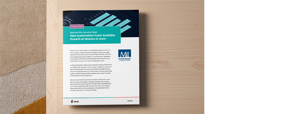 Matson & Isom began by automating common service desk work and saw quick wins. As the business grew, scripts and one-off automations became harder to maintain and even harder to share.